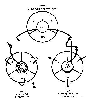 Gods Holy Spirit dwelt in the human spirit again. Born-again people became complete human beings as their spirit began to function. Alive in the truest sense. Functioning as God intended man to function. All of this, our writer says, is accomplished "by the blood of Christ" (9:14). What is it about Christs blood which makes it unique? To answer that question, we examine figure 3 again. As God first made him, man was a tripartite being consisting of body, soul and spirit. At the control center, or, to continue our present figure of speech, the throne room, humanities "holy of holies, dwelt Gods own Holy Spirit. (Note circle to lower left in figure 3.) With Gods Spirit feeding and fortifying mans spirit, Adam was truly alive. When Adam sinned, he died spiritually. (Note circle to lower right in figure 3.) Gods Holy Spirit left him. (Coincidentally, Adam later died physically as an after-effect of his earlier spiritual death.) The reason Adam could die because of sin was that, prior to his rebellion against God, he was truly alive! He was filled with the Holy Spirit. Those of us who have come after Adam have notbeen alive spiritually, until Jesus moves in to give us life. Being sons of Adam, at birth we inherit Adam's spiritually dead condition. But, Jesus was not a son of Adam, He was the Son of God. Jesus has been called the "second Adam" because He was patterned after the first Adambefore the fall (figure 5). Jesus could die for sin and His blood could atone for sin because Jesus was the only man since Adam who was truly alive, that is, filled with the Holy Spirit from the moment of His physical birth and throughout His lifetime. That's what the Bible means when it says, "God (the Holy Spirit) was in Christ reconciling the world to Himself" (2 Corinthians 5:19). In the strictest sense of the word, in all of history there have been only two deaths because of sin. Death occurred once in Adam because of his disobedience. It occurred a second time in Jesus because of His obedience unto death. Because Christs death was adequate, it will never be repeated. When you become a Christian, your spirit is quickened. The Holy Spirit of God occupies your "holy of holies." You are made alive. Truly alive. Everlastingly alive. Thats what Jesus meant when He said, "I came that they might have life" (John 10: l0b). All this is accomplished through the blood of Christ. Theres nothing you can add to what Jesus has done to make it more complete. Tell yourself this long enough and loud enough until ithardens into a firm, life-directing, thought-controlling conviction. Then Satans effort at generating sub-Christian guilt because you arent doing enough to make yourself acceptable to God, will fail. Your conscience will remain quiet because, when confronted with the blood of Christ, a nagging conscience has nothing to say! It is left speechless when you remind yourself the blood of Christ completely satisfies God as far as your perfection is concerned. The heavenly Father does not accept you because you wear yourself to a frazzle in futile religious activity. God accepts you, because you are in Christ. When you grasp that wonderful truth, your service for Him will no longer be a duty. It will be pure delight. A way of saying: "Thank you, Jesus; thank you, thank you, thank you, Jesus!" And forgiveness will not be something you struggle to earn as a saved-sinner. Instead, it will be a blessing you joyfully receive, having been bought by the blood of the Lamb of God "which takes away the sin of the world" (John 1:29). Do you understand? Please say, yes! Joe Blinco, a gentle spiritual giant now gone to be with God, was often heard to say, "A thousand times Ive failed Christ. A thousand times Ive forfeited my right to heaven. A thousand times Ive marred the image of God in me. But ten thousand times ten thousand Christ has been ready, willing and able to forgive me. Cleanse me. Point me in the right direction again. And use me."Thats grace! The unmerited, undeserved, unearned goodness of God made possible through the blood of Jesus. Joe Blinco didnt focus on his failure, but upon Gods success! Thats something all saved- sinners must learn to do. During the heat of temptation it helps to talk to Satan about the blood of Jesus. Such talk puts you on the offensive, and Satan on the defensive. The rest of the time you should remind yourself of the precious, healing stream which flows from Calvary. Repeatedly you should remind yourself of what Jesus has done. What you say to yourself is important! If you believe the devils lies that youre worthless, hopeless and useless, you will be goaded by an uneasy conscience into trying to make yourself acceptable to God through "dead works " (9:14). If you remind yourself that the blood of Christ completely satisfies God as far as you are concerned, the pressure will be off for you to do anything to make yourself more safe and secure. The burden of adequacy will no longer be on your back, because one day it was placed on His back in the form of a cross. What had to be done, Jesus did! Now, because He lives to make intercession for you, because Jesus is whats happening, He is doing, and will continue to do, what needs to be done in, to and through you. And that's awesome! Notes |